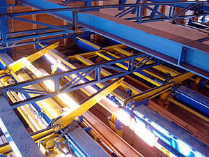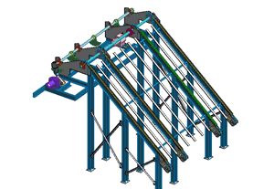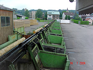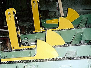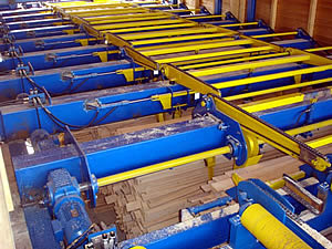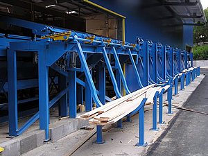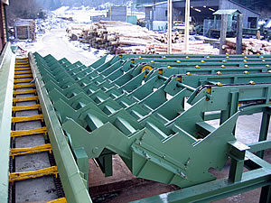 SORTERS - for sorting of timber at the end of the manipulation line according to its dimensions, type of wood and quality. The timber is transported out of the manipulation line and pushed out to the side collect boxes.