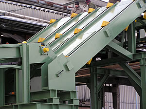 LIFT-UP CONVEYOR - for elevating of timber towards the sawing machine